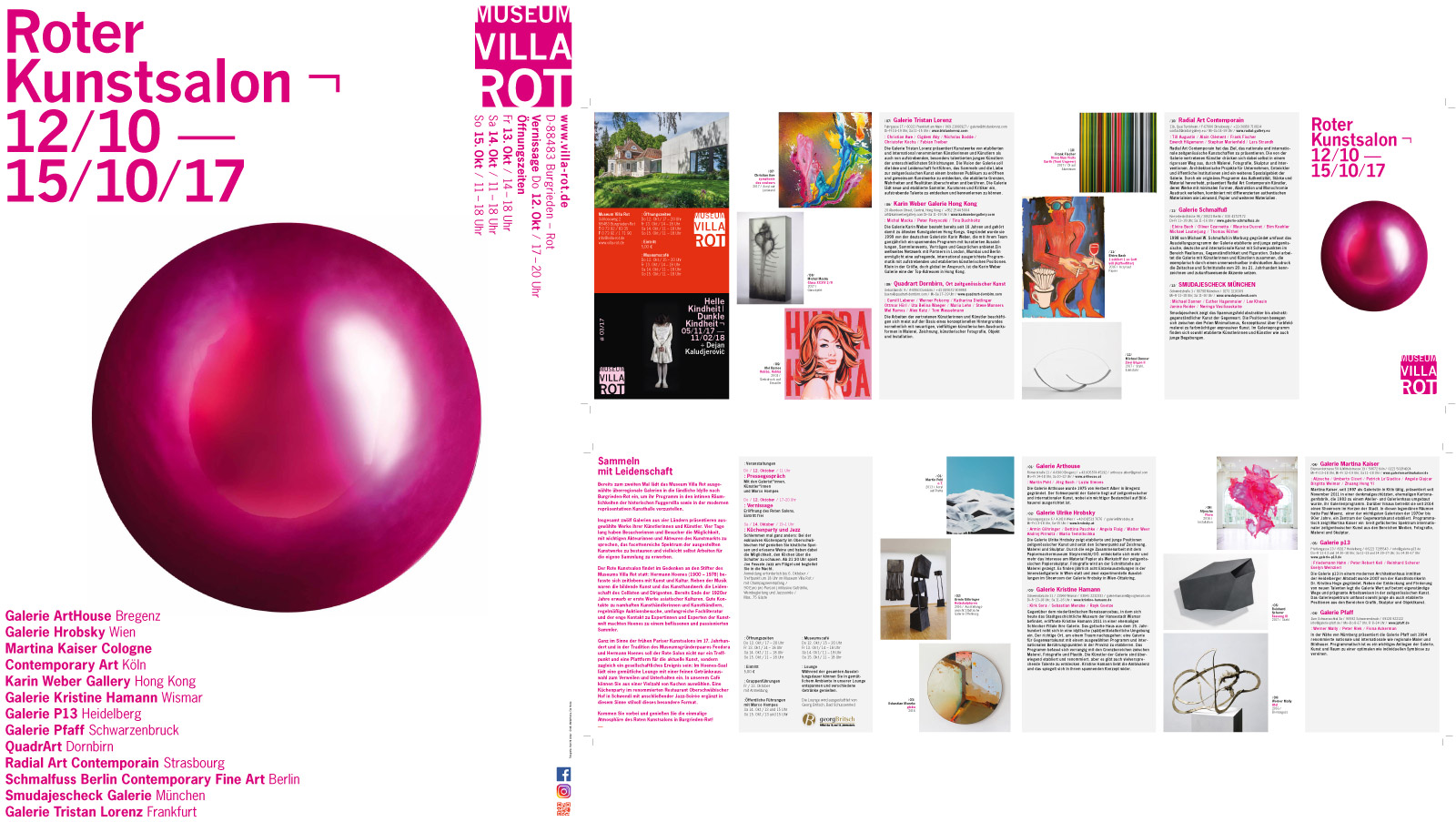 Das Museum Villa Rot lädt bereits zum zweiten Mal überregionale Galerien in die ländliche Idylle nach Burgrieden-Rot ein, um das Programm in den intimen Räumlichkeiten der historischen Fuggervilla sowie in der modernen repräsentativen Kunsthalle vorzustellen.